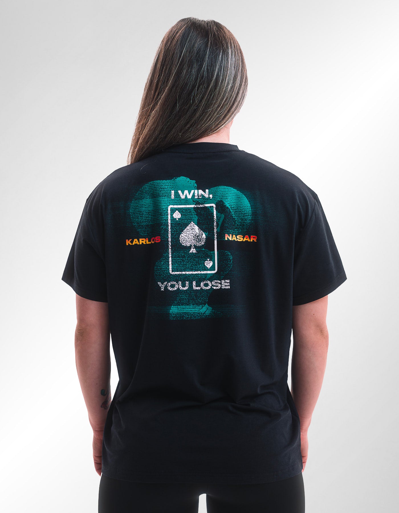 Made in collaboration with the greatest weightlifter of a generation, the Nasar ‘I Win, You Lose’ T-shirt.